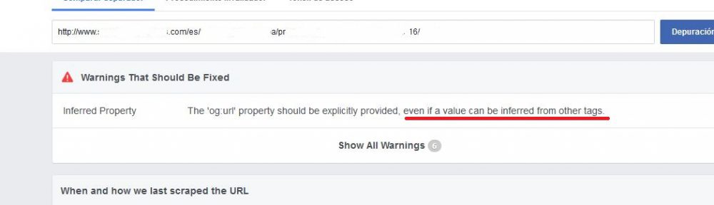 Resultados de la herramienta Sharing Debugger de Facebook al procesar una URL